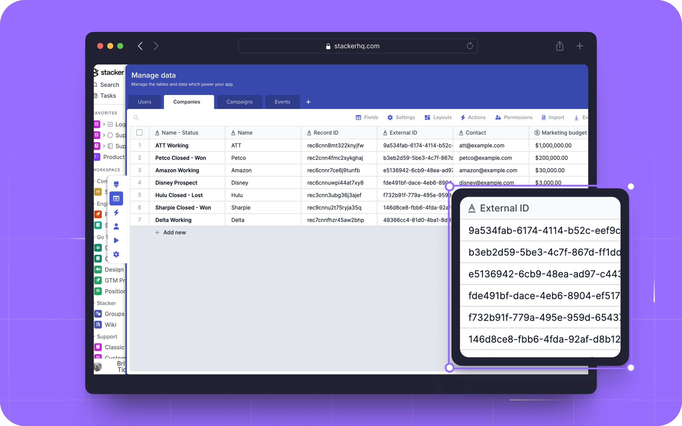 For example, when identifying a record in Hubspot to update in Stacker use the External IDs from Hubspot to update the corresponding record. This can also be used for linking records, if you had activities in Hubspot related to your contact, then you can load the Activity into Stacker and use the Hubspot Contact ID to link the records.